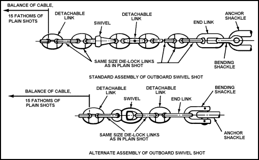 Đoạn xích tiêu chuẩn (Common Shackles): Có chiều dài quy chuẩn là 27.5 m (tương đương 15 fathoms). Một con tàu thường trang bị từ 8 đến 12 đoạn mỗi bên.