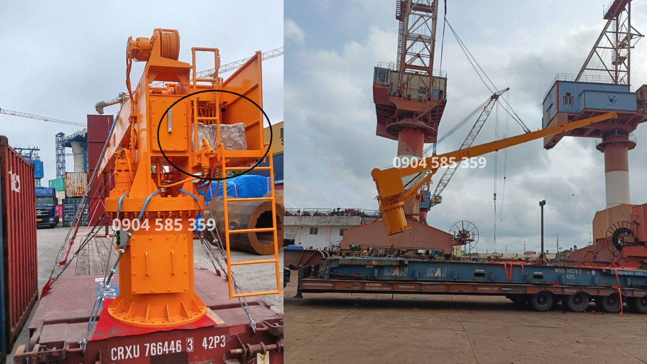 - Cẩu di động: Được thiết kế nhỏ gọn, dễ dàng di chuyển đến nhiều vị trí khác nhau trên tàu hoặc bến cảng, loại cẩu này phù hợp cho các hoạt động cần sự linh hoạt cao.