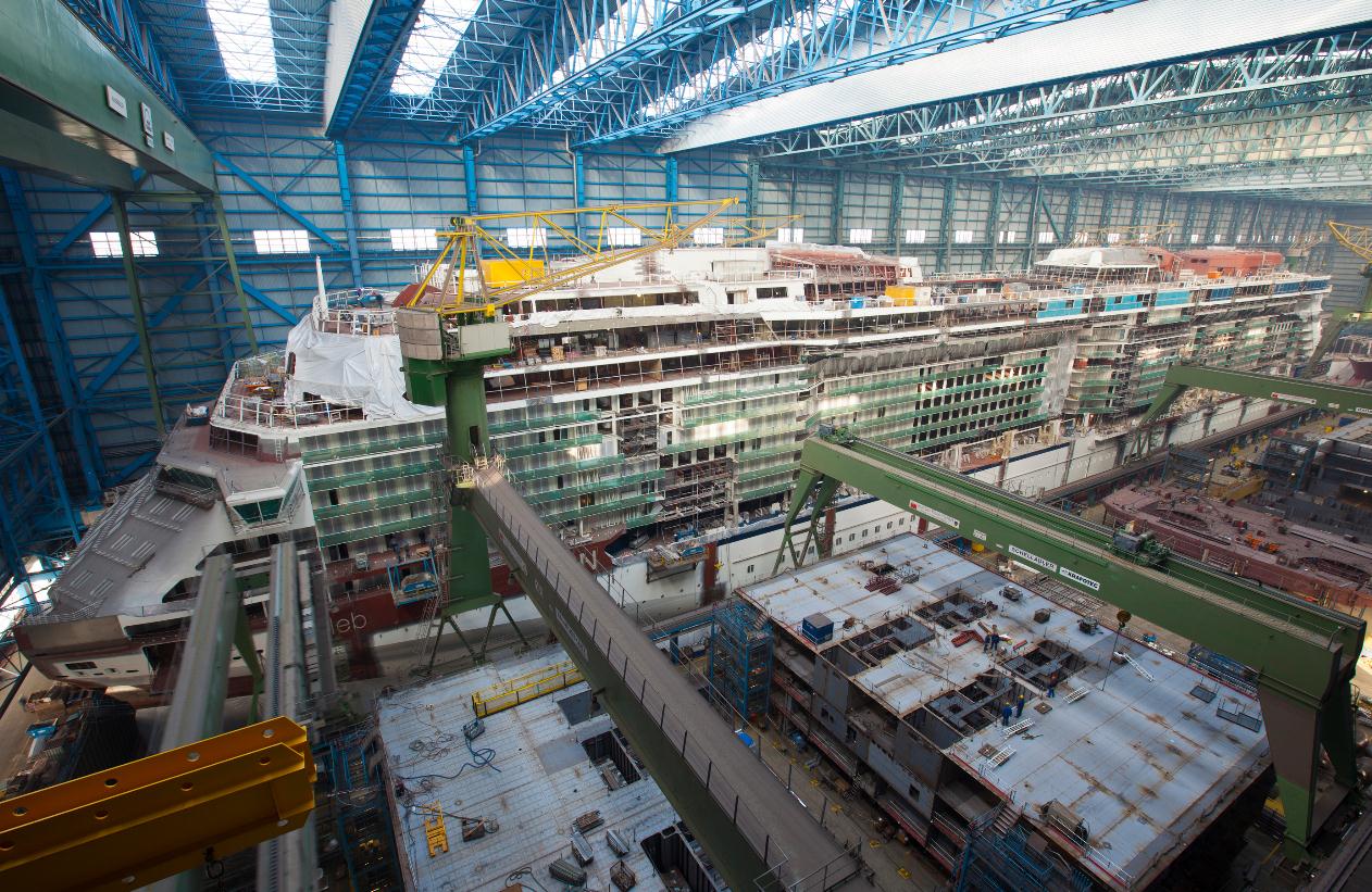 Sau khi hoàn thành các module, tiến hành lắp tổng thành trên đà tàu. Đây là giai đoạn quan trọng nhất, đòi hỏi chất lượng cao và giám sát chặt chẽ để đảm bảo các đặc tính kỹ thuật, thẩm mỹ và độ bền của con tàu.