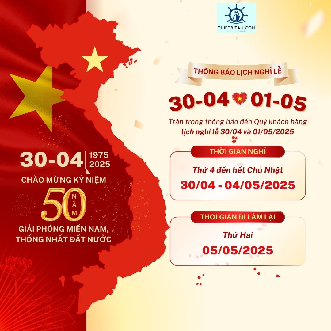 Trân trọng thông báo đến Quý khách hàng lịch nghỉ lễ 30/04 và 01/05/2025